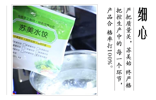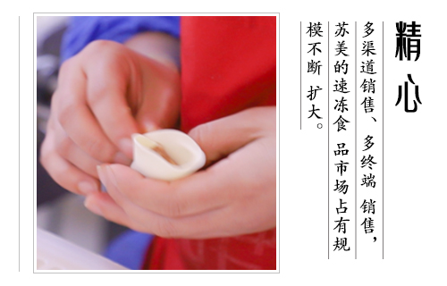 公司產(chǎn)品涵蓋速凍水餃(含手工水餃和大餡水餃)、速凍餛飩、速凍湯圓等三個(gè)系列、30多個(gè)花色品種,主要產(chǎn)品在華東、華西、華北的市場占有率達(dá)18%以上,其中蘇美的芹菜豬肉水餃、韭菜雞蛋水餃以其獨(dú)特的口感,大受消費(fèi)者好評,成為了新晉的網(wǎng)紅美食.